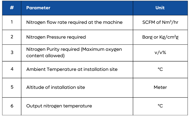 To ensure optimal performance and energy efficiency, gather the following data before selecting a PSA generator: